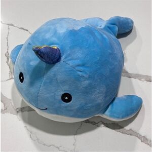 KELLYTOY | 12" Blue Narwhal Plush Squishy Stuffed Animal Toy