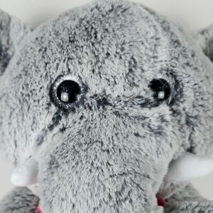 Adorable gray and pink elephant plush toy with a cute bow. Perfect for cuddling and playtime. Pre-owned in Excellent Condition. Washed & Sanitized