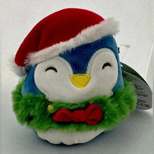 Mini- Squishmallow. Puff. Squish date: 11-20-21. Adorable Christmas plush, with a green wreath & red bow, and red Santa hat. Brand new. Never used. NWT.