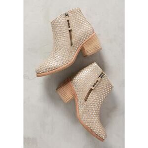 KELSEY DAGGER BROOKLYN Anthropologie Grove Metallic Woven Ankle Booties Sz 8