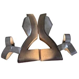 Beautiful two tone contrast/Dark Gray metallic with wooden heel.