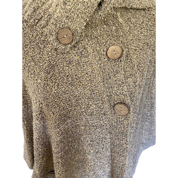 KELSEY Poncho Cape Gold Sparkle Sweater Womens Wood Buttons SZ M/L