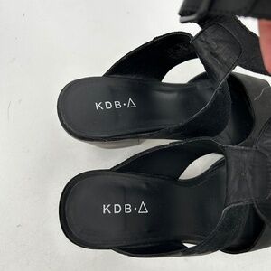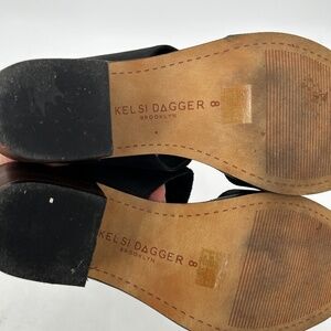 KELSI DAGGER Black Leather Suede Ankle Strap Stacked Heel Boho Sandal Heels 8
