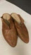 KELSI DAGGER Brooklyn Flat Shoes Leather Slip On Leather upper. Suede lined flexible slotted opening has light soil markings on the exterior. The soles on the bottom are in excellent condition. Minor marks can be seen on the wood heels.