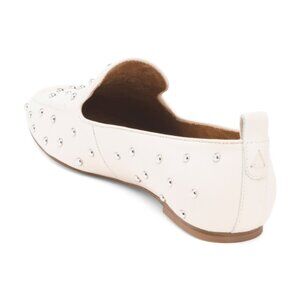 smooth finish, stud embellished, penny strap, pull on loops, lightly cushioned footbed, whipstitch details, traction outsole
