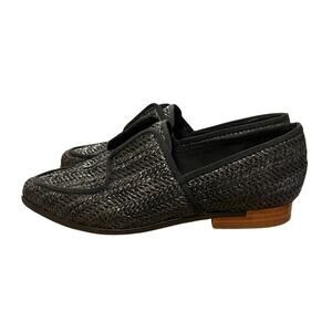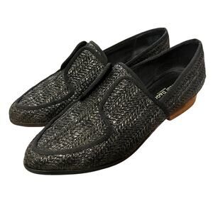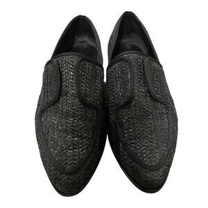 KELSI DAGGER Womans 6 Stanton Woven Straw Loafers Pointed Toe Slip On Black Gray