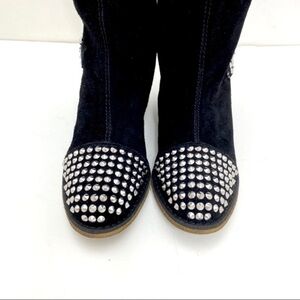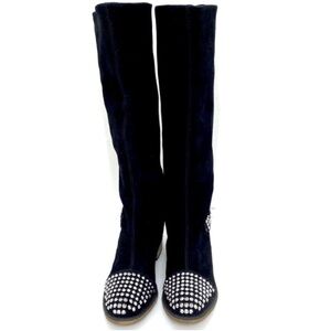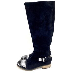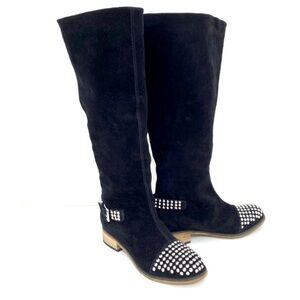 Kelsi Dagger Studded Cup toe Rover Suede Knee High Riding Moto Boot in Black