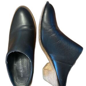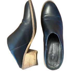 KELSIE DAGGER Black Leather Mule Heel Clogs Size 7.5