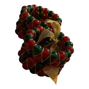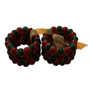 KEMP & BEATLEY SET OF 4 CHRISTMAS RED & GREEN GLASS BEADED NAPKIN RINGS HOLDERS