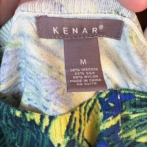 KENAR Blue Green Silk Blend Daphne Knit Top Size M Multicolor Print Short Sleeve