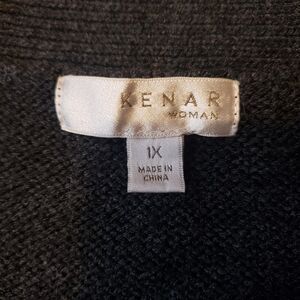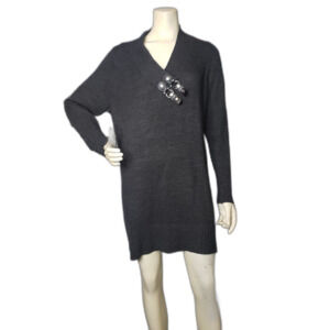 KENAR Charcoal Tunic Sweater with Faux Leather Buckle Detail Womens Plus Size 1X