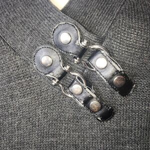Charcoal Tunic Sweater with Faux Leather Buckle Detail