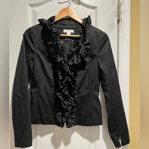 KENAR Dressy Evening Blazer Jacket small Black Pleated Ruffle Neck