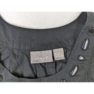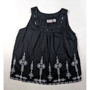 KENAR - WOMEN'S BLACK COTTON EMBROIDERD TANK TOP - SIZE L