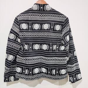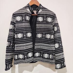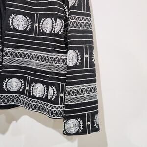 KENAR Womens Black White Embroidered Open Jacket Size Small Boho Southwestern