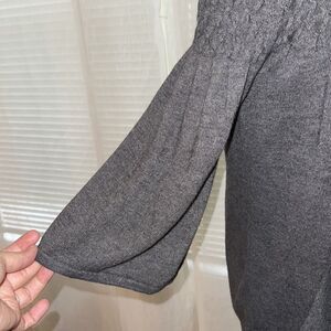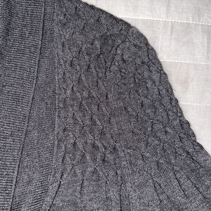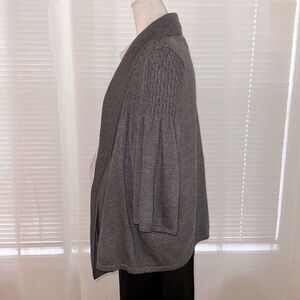KENAR L Charcoal Gray Knit Open Front Shawl Collar Quarter Sleeve Cardigan