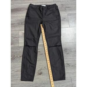 These pants are size 28. The solid pattern and black color make them versatile enough to pair with any top, while the stretch feature ensures a comfortable and easy-to-wear fit. With a designer theme and no vintage elements, these pants are a must-have addition to any fashion-forward woman's wardrobe.