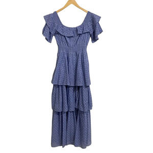 KENDALL + KYLIE Blue Eyelet Tiered Ruffle Anglaise Off-Shoulder Dress Size 4/6