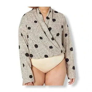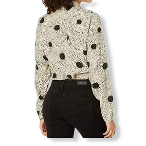 100% Polyester- Imported- Snap closure- Machine Wash- color: cream/ polka dot