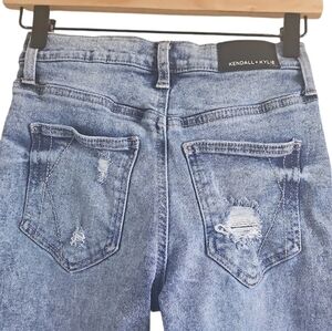 KENDALL & KYLIE DISTRESSED HIGH RISE SLIM STRAIGHT JEANS