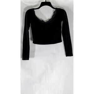 KENDALL & KYLIE Women's Crochet Trim Boat-Neck Long Sleeve Crop Top SZ S
