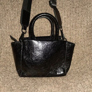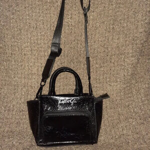 KENDALL & KYLIE-Crinkled Black Mini Tote Bag-Crossbody/Top Handle-Near Mint/New