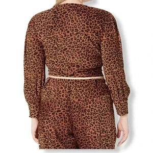 KENDALL + KYLIE Wrap Balloon Sleeve Leopard top