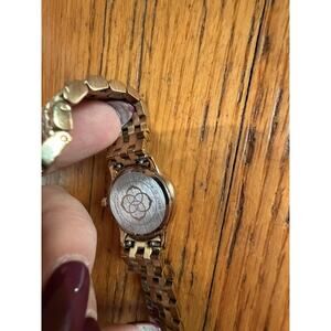 Color: Gold-tone case and bracelet with white mother of pearl dial and gold-tone hour markers and hands.