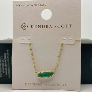 KENDRA SCOTT Feminine Elisa Emerald Cat’s Eye Pendant Necklace 14K Gold NEW NWT