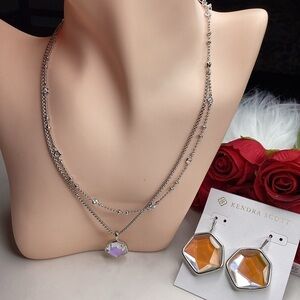 New, Kendra Scott brand, Vanessa style, Dichroic glass, silver color, dangle earrings, beautiful necklace earrings set.