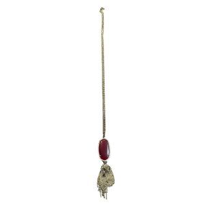 EXCELLENT USED CONDITION - Kendra Scott's Rayne Necklace in Maroon features a signature oval-shaped stone and a fun tassel, making this a must-have statement that can be worn with anything. 14K Gold Plated Over Brass. Size: 5.5"L x 1.125"L pendant on 30" chain with extender. Lobster claw closure.