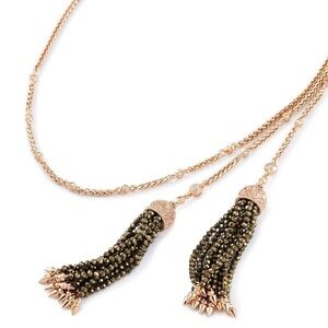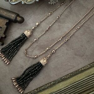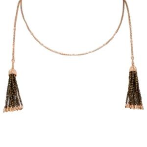 A trend-forward necklace designed to make layering a breeze, the Monique Lariat Necklace features stone beaded tassels hanging from a delicate metallic chain.