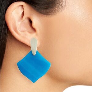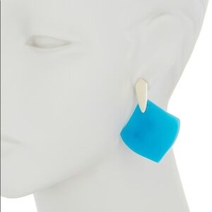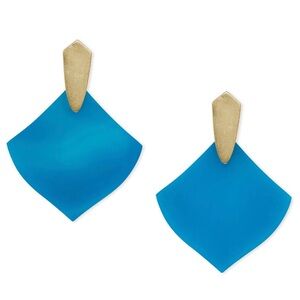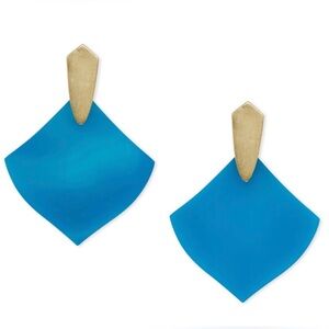 NWOT Kendra Scott Bold Statement Gold Drop In Teal Agate Earrings