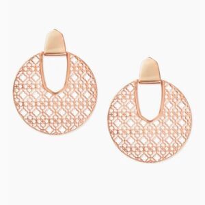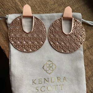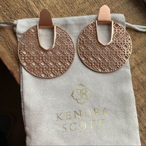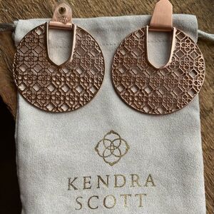 Like new Kendra Scott Diane Rose Gold Statement Earrings In Rose Gold Filigree. EUC, great shape, 14K Rose Gold Plated Over Brass, Size: 2.625"L x 2.125"W on post, see pictures for details.