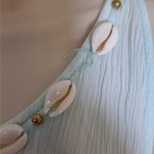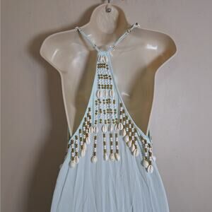 The Kenli Midi Cover-up is a beautiful ombre beach dress with shell novelty at the back. Ombre Racerback Midi Dress With Back Beaded Fringe And Shell Details. 50" From Top Of Shoulder To Hem. Length: Midi. Crinkle Viscose Gauze - Garment Dyed (100% Rayon). Hand Wash Cold. Separately.