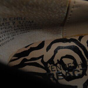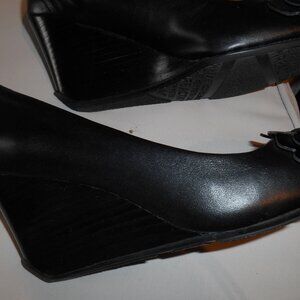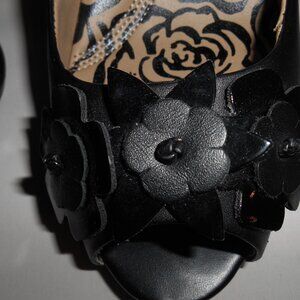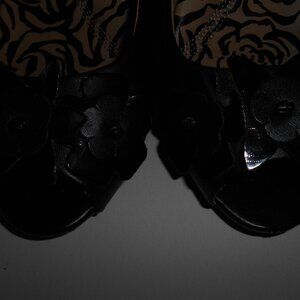 BRAND NAME KENNETH COLE BLACK WEDGE OPREN TOE SHOE THE HEEL WEDGE IS 3.5", EMBELLISHE FRONT OPEN TOE THE DEFECT THE RIGHT SHOE IS 7M THE LEFT SHOE 7.5M