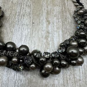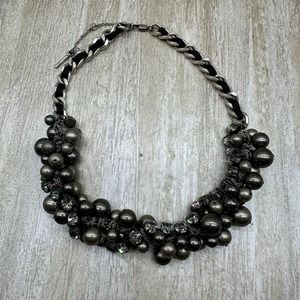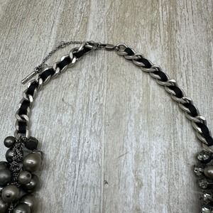 KENNETH COLE Bead & Crystal Necklace Multi Strand Black & Silver Tone