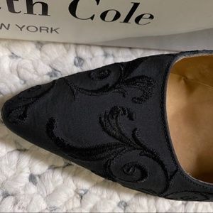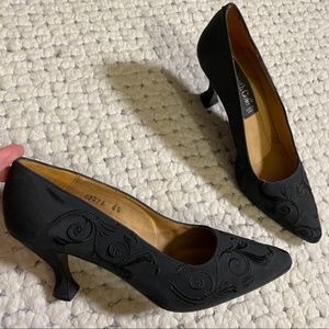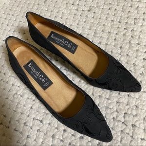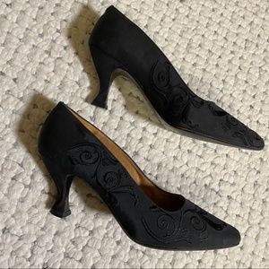Kenneth Cole Black Embroidered Kitten Heels 6.5 NY