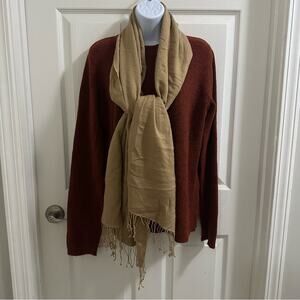 💥KENNETH COLE Cashmere Silk Fringe Tassel Scarf Women’s One Size Camel Tan color