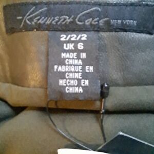 KENNETH COLE Dark Olive Leather Tack Patch Mini Skirt Size 2