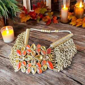 This stylish Kenneth Cole bracelet features a gorgeous floral design with red and amber teardrop stones on a gold-tone base. The stretchy, pull-over style allows for an easy fit with a slightly loose, comfortable feel, perfect for everyday wear or special occasions.