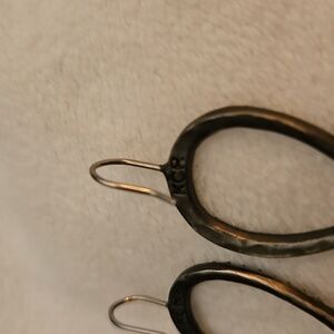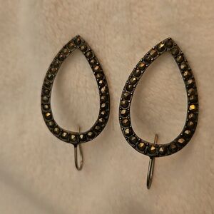 KENNETH COLE Gunmetal Marcasite Hollow Teardrop Hook Earrings