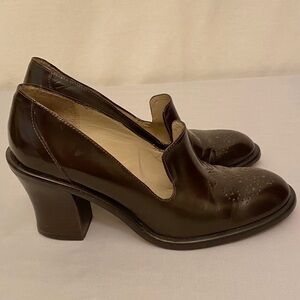 KENNETH COLE Leather Brazil Chunky Block Heel Pumps Shoes Brown Academia Sz 6.5