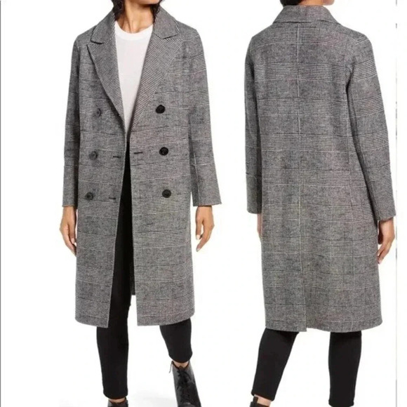 KENNETH COLE NEW YORK Houndstooth Wool Blend Coat Size S