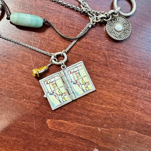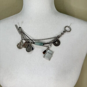 Super fun piece. Multi strands. Lots of detail in the charms. Toggle style closure.