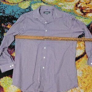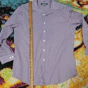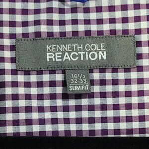 KENNETH COLE PURPLE WHITE GINGHAM COTTON SHIRT EUC 16 1/2 32-33