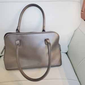 This is a great Kenneth Cole reaction purse in Silver. It's in excellent condition.Please look at pictures closely there is one spot on the back that's barely noticeable. The inside is perfectly clean. Dimensions are 14 / 9 / 5