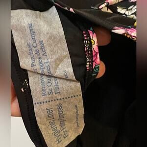 mixed floral and stripe pattern, fabric provides stretch, removable bra cups, adjustable shoulder straps