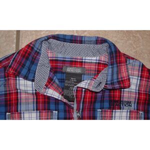 KENNETH COLE REACTION Boys Sz 8/10 Plaid Long Sleeve Button Up Cotton LOGO Shirt