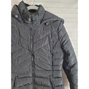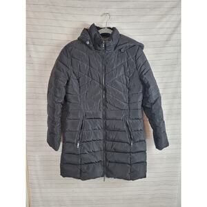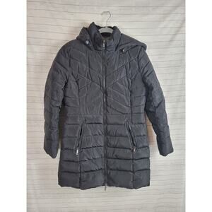 KENNETH COLE REACTION DOWN FILLED MIDI BLACK PARKA, SZ SMALL